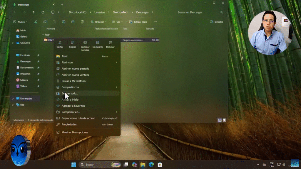 - Extrae el contenido del archivo ZIP en una carpeta de tu elección. Puedes hacer clic derecho sobre él .zip y seleccionar «Extraer todo», luego elige la carpeta deseada.